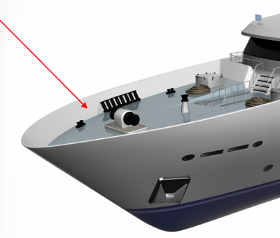 Оснащается отверстиями для швартовки и клюзов