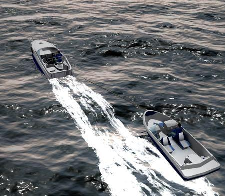 При буксировке в кильватер на волнении длина буксирного троса регулируется так, чтобы оба судна одновременно проходили по гребням или впадинам волны.