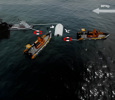 При подходе к перевернувшемуся судну для снятия людей могут применяться все перечисленные способы в зависимости от конкретной ситуации:
