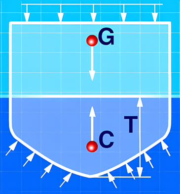 Поперечный метацентр (m) можно определить, как центр кривизны кривой, по которой перемещается центр величины при наклонениях в поперечной плоскости. При совпадении точек m и G судно следует считать неостойчивым: оно будет плавать (в пределах малых углов крена) в состоянии безразличного равновесия.