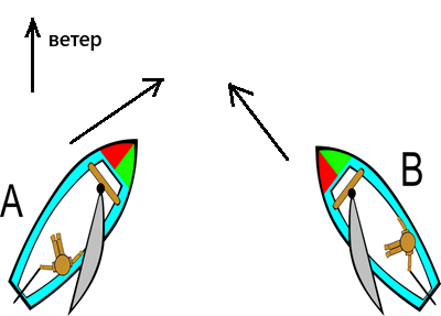 Если два парусных судна идут курсами, пересекающимися таким образом, что может возникнуть опасность столкновения, то: когда суда идут разными галсами, судно, идущее левым галсом, должно уступить дорогу другому судну;