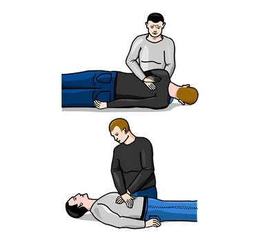 Толчки на верхнюю часть живота (прием Геймлиха) — это экстренная мера при обструкции дыхательных путей инородным телом.