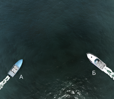 Какой из маневров на моторной лодке "А" является наиболее эффективным, чтобы уступить дорогу катеру "Б"? | ВВ
