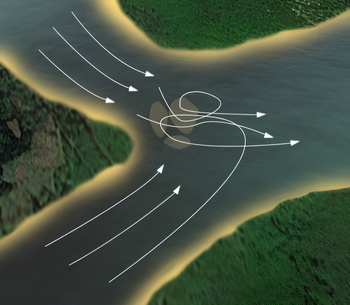 Майдан — это беспорядочно-возмущенное вращательное движение воды в виде подвижных вихрей, которое образуется: