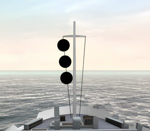 Судно на мели должно выставлять огни на наиболее видном месте: три шара, расположенных по вертикальной линии.