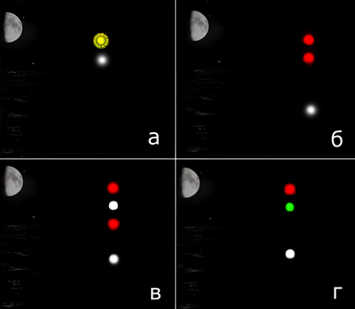Парусное судно на ходу может в дополнение к огням, предписанным пунктом (а) этого Правила, выставлять на топе или около топа мачты на наиболее видном месте два круговых огня, расположенных по вертикальной линии, верхний из которых должен быть красный, а нижний — зелёным, но эти огни не должны выставляться вместе с комбинированным фонарём, разрешённым в соответствии с пунктом (b) этого Правила.