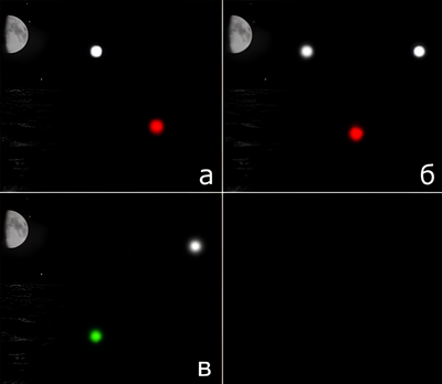 На изображении «а» мы наблюдаем бортовой огонь на левом борту.