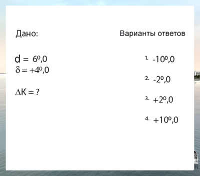 ΔК = d + δ = 6° + 4° = 10°