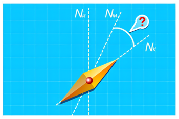 Девиация магнитного компаса — это горизонтальный угол между плоскостью магнитного и плоскостью компасного меридианов. Девиация отсчитывается от севернойчасти магнитного меридиана (в отличие отсклонения, отсчитываемого от меридианаистинного) в восточную (к Е) или западную (кW) стороны. Соответственно восточная (кЕ) девиация имеет знак «плюс» (+), а западная (к W) — «минус» (-). Важно запомнить, что при изменении курса судна изменяетсяи значение девиации.