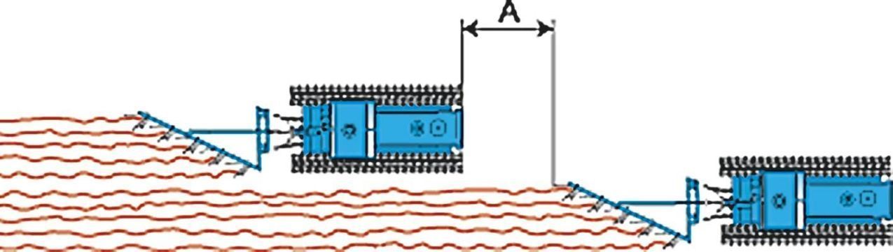 При работе нескольких агрегатов в одной загонке дистанция (А) между машинами должна составлять: |