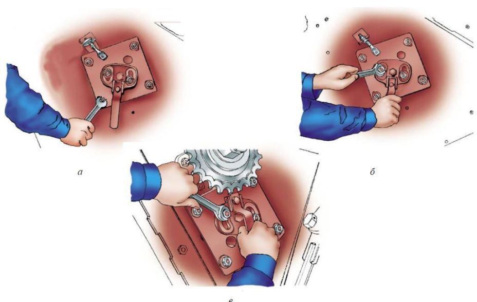Укажите правильный вариант регулировки зазора между пальцами битера проставки и днищем жатки: |