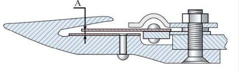 Допустимый наибольший зазор (А) между передней частью сегмента и противорежущей пластиной режущего аппарата жатки КСК–100А: |