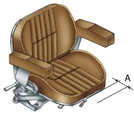 В каких пределах возможно регулирование сиденья на комбайне “Дон-1500” по ходу движения (А)? |