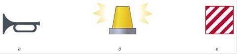 Мигающий или непрерывный световой сигнал (б).