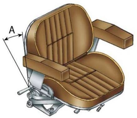 В каких пределах возможно регулирование спинки сиденья на комбайне “Дон-1500” по углу наклона (A)? |