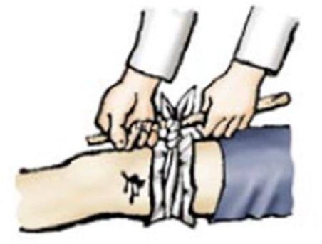 Наблюдается артериальное кровотечение из конечности. Для его прекращения накладывается кровоостанавливающий жгут. Затяжку жгута ведут: |