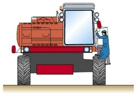 Допускается ли работа на комбайне в одежде со свободными полами, рукавами и т.д.? |