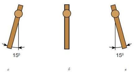Под углом 15° вперед (а).