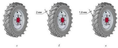 При остаточной высоте почвозацепов до 1,6 мм (в).