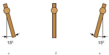 Под углом 15° назад (а).