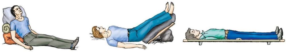 Каким образом необходимо уложить пострадавшего, если у него отсутствует или плохо прощупывается пульс, отмечается бледность (в связи с кровотечением, кровопотерей)? |