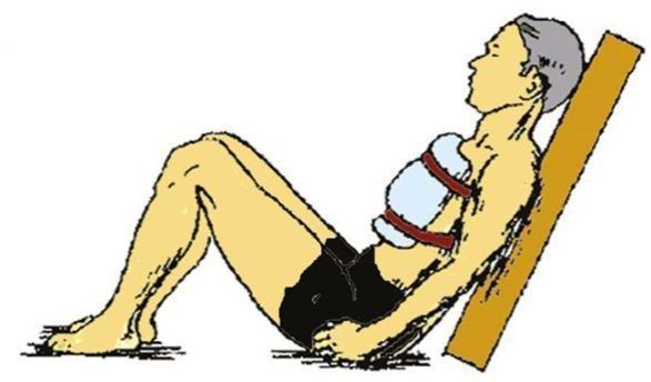 При каких повреждениях рекомендуется перевести пострадавшего в полусидячее положение с согнутыми в коленях ногами, наложить холодный компресс? |