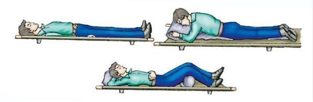 В каком положении необходимо транспортировать пострадавшего с повреждением костей таза? |