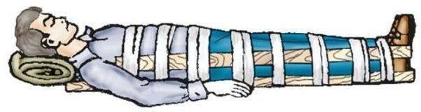 Как следует накладывать шину при переломе бедра? |